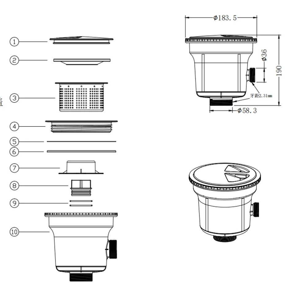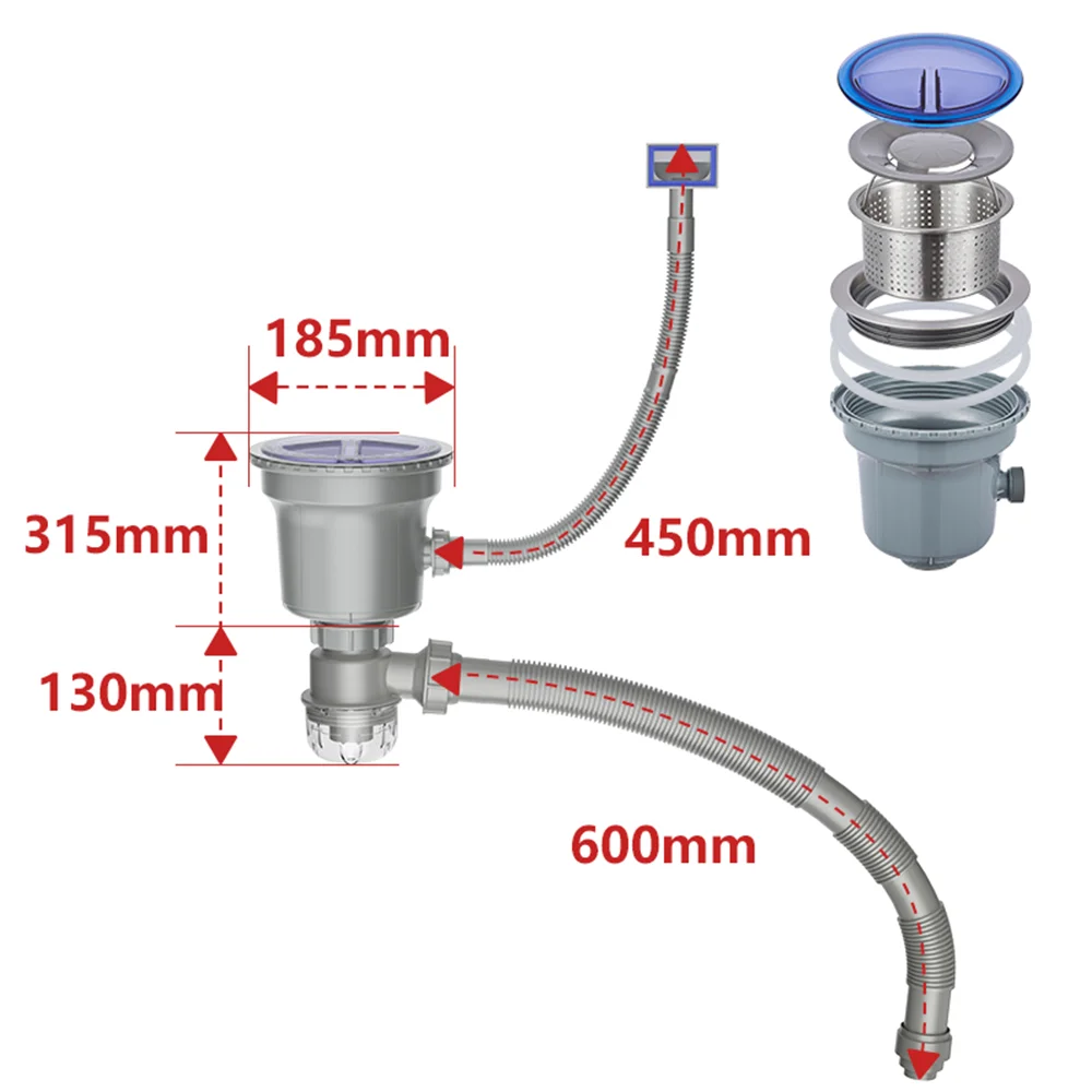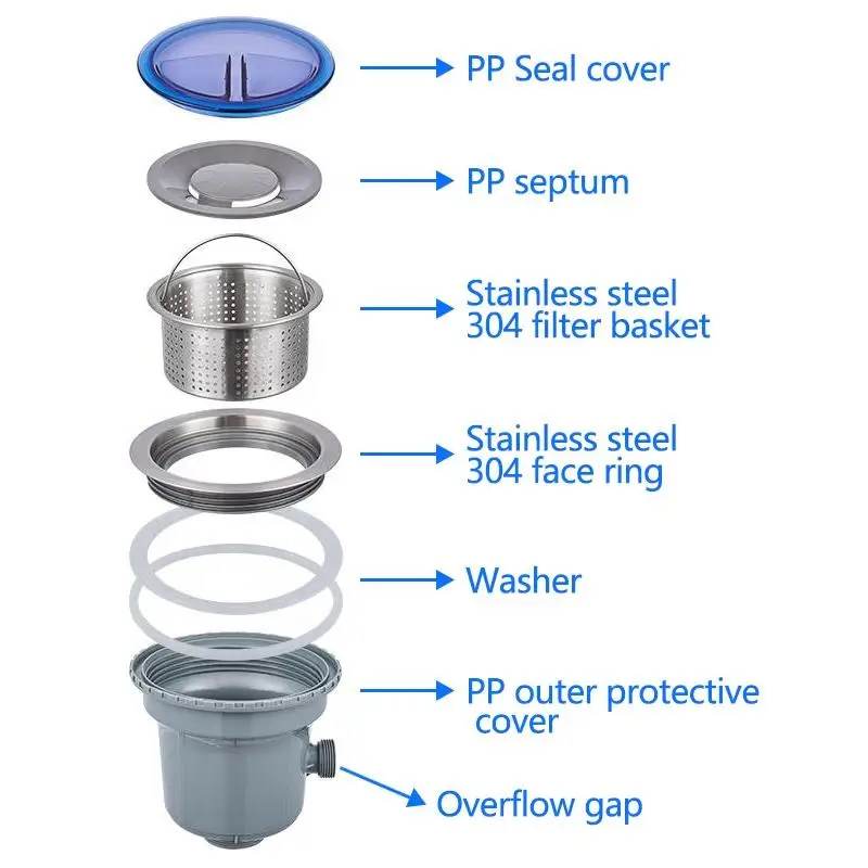 Bestseller SS Afdekkingszeef Afvalmet Removable Deep Waste Mand Montage Afvoerlepelbeker met Overloopwater