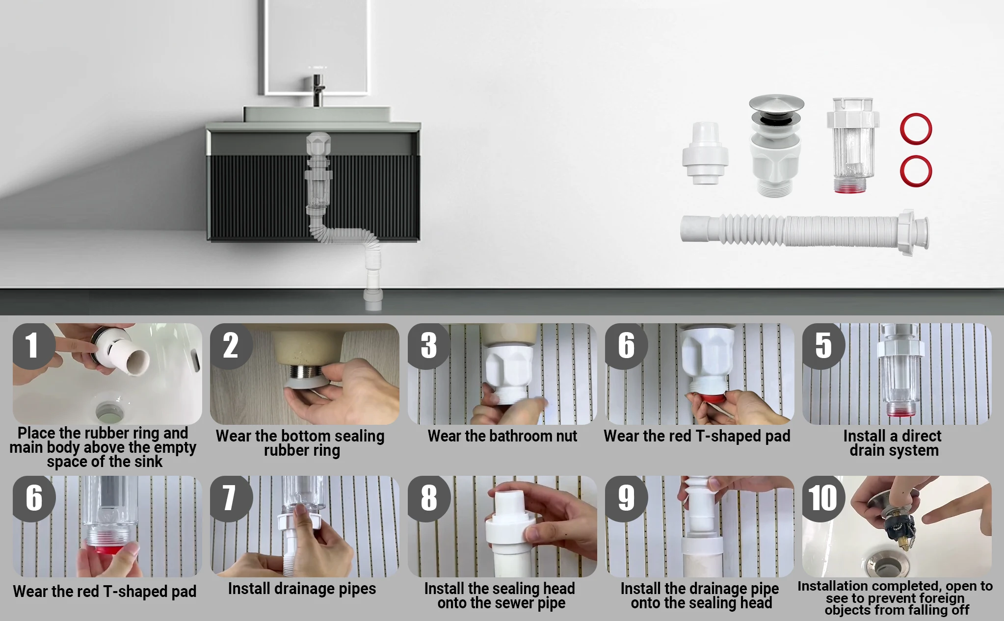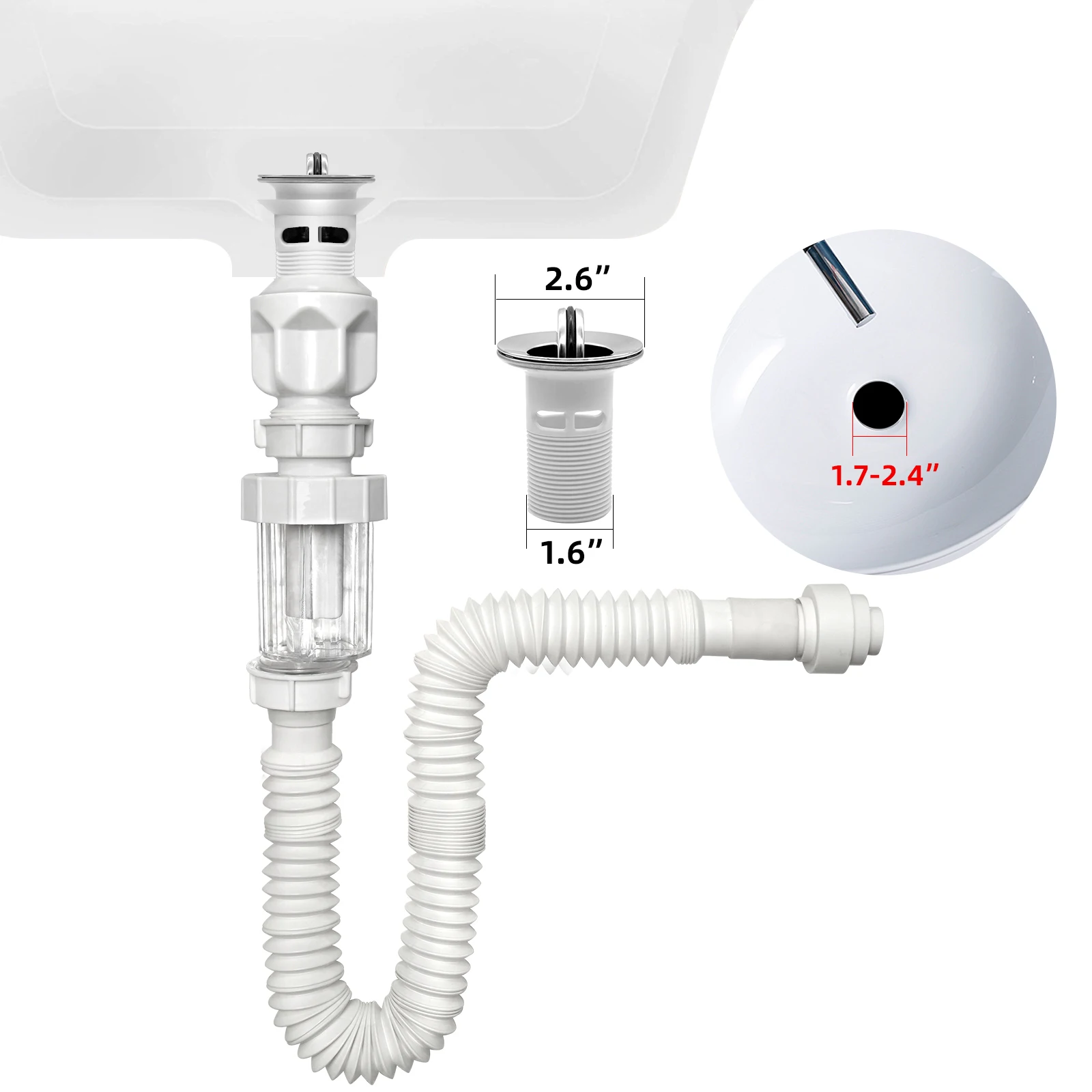 2024 Nieuw ontwerp gootfilter SS 201/304 Keuken goot zeef met PP materiaal buis Keuken gootfittingen afvloeier