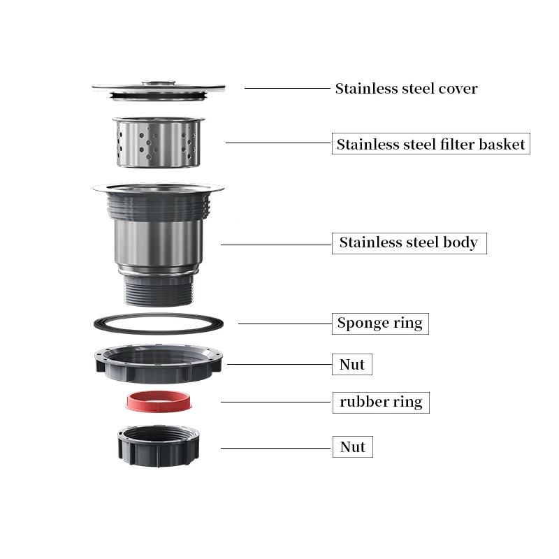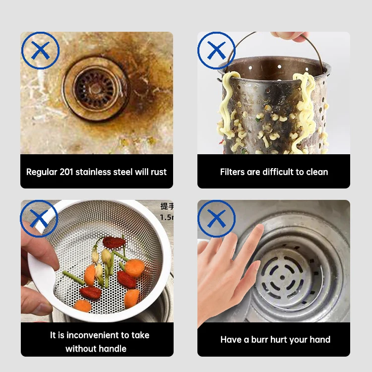 Bestseller SS Afdekkingszeef Afvalmet Removable Deep Waste Mand Montage Afvoerlepelbeker met Overloopwater