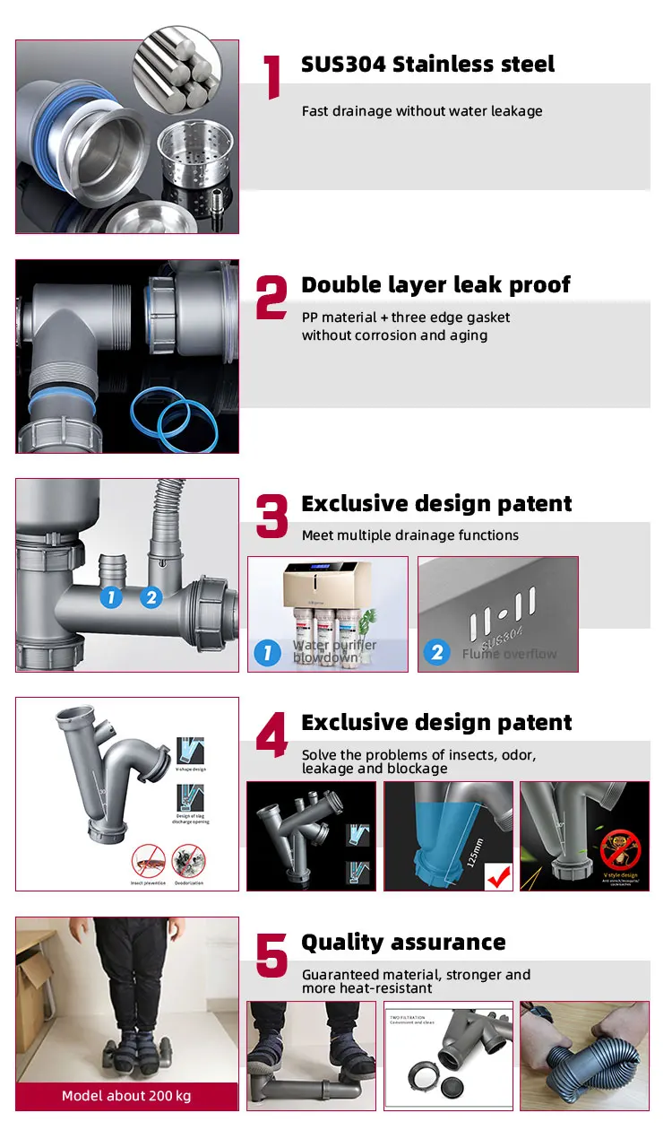 Bestseller SS Afdekkingszeef Afvalmet Removable Deep Waste Mand Montage Afvoerlepelbeker met Overloopwater