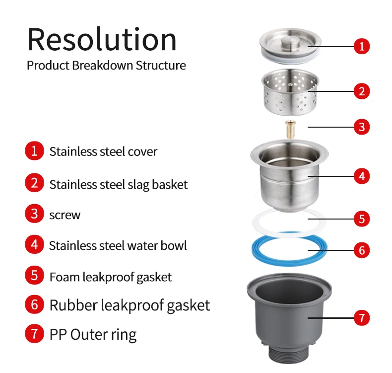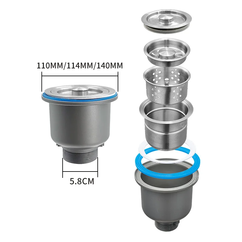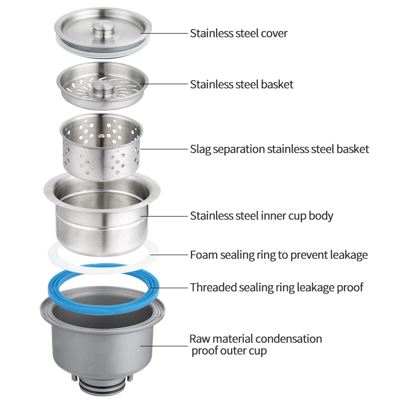 Bestseller SS Afdekkingszeef Afvalmet Removable Deep Waste Mand Montage Afvoerlepelbeker met Overloopwater