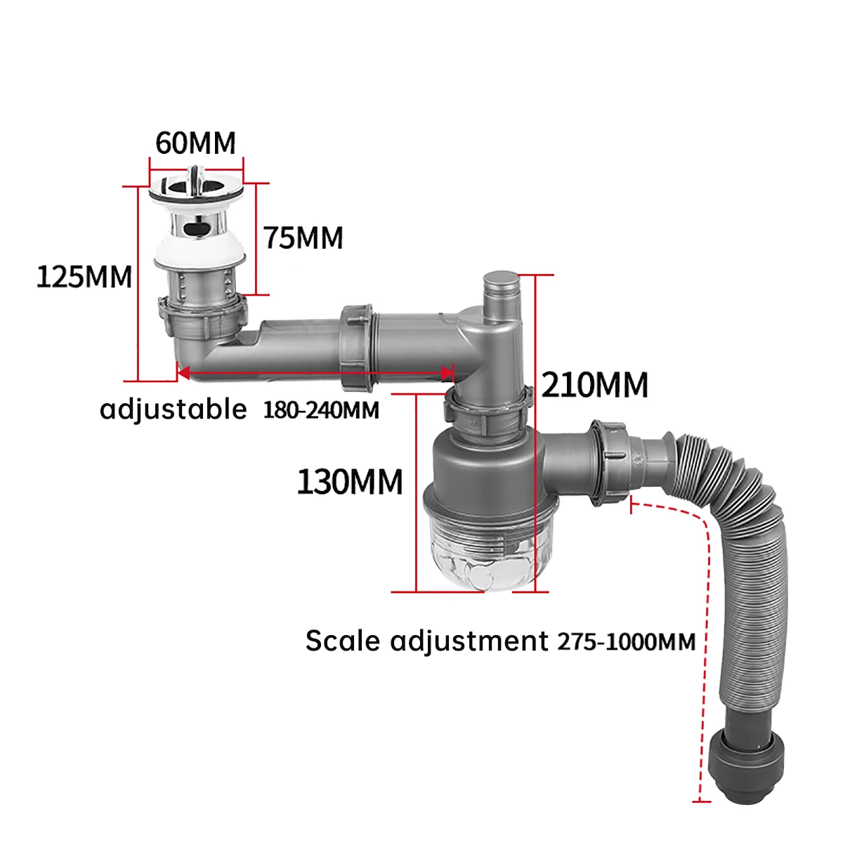 Fabriekproductie Afvoerbuis voor afvalwater Geur- en insectbestendige flexibele slang voor keukenafvoer Afvoerbuis reiniger voor wastafel