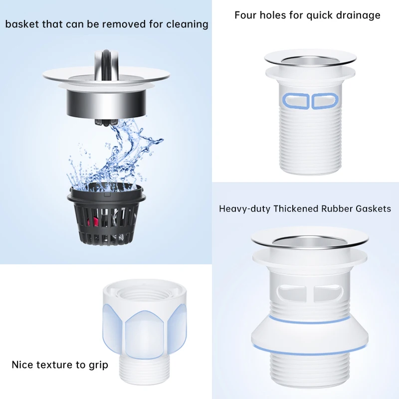 2024 Nieuw ontwerp gootfilter SS 201/304 Keuken goot zeef met PP materiaal buis Keuken gootfittingen afvloeier
