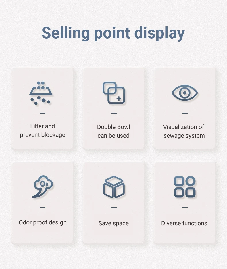 Bestseller SS Afdekkingszeef Afvalmet Removable Deep Waste Mand Montage Afvoerlepelbeker met Overloopwater