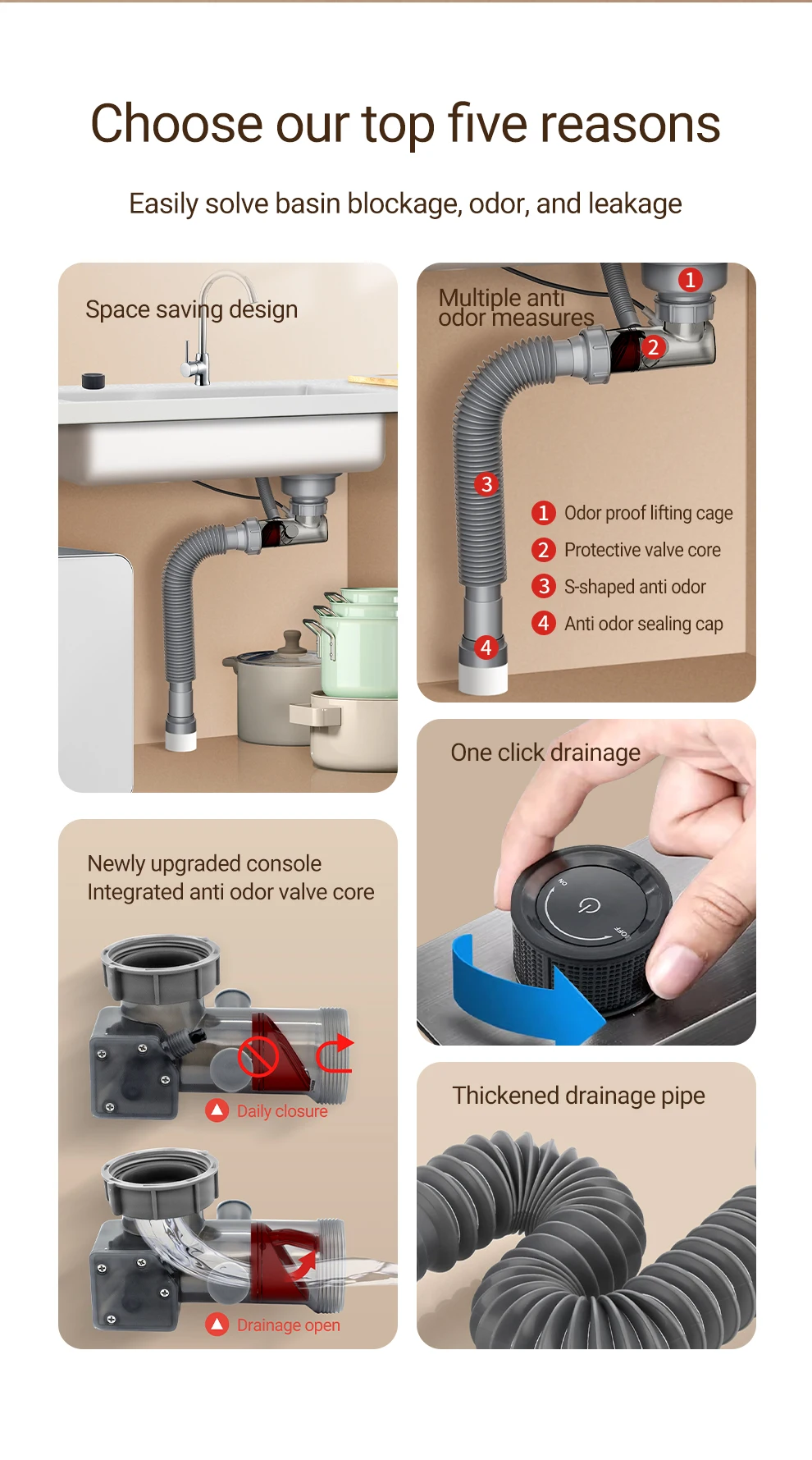 Badkamer opstaande drukknop wastafel flexibele afvoerpijp sifon met uit te trekken slang
