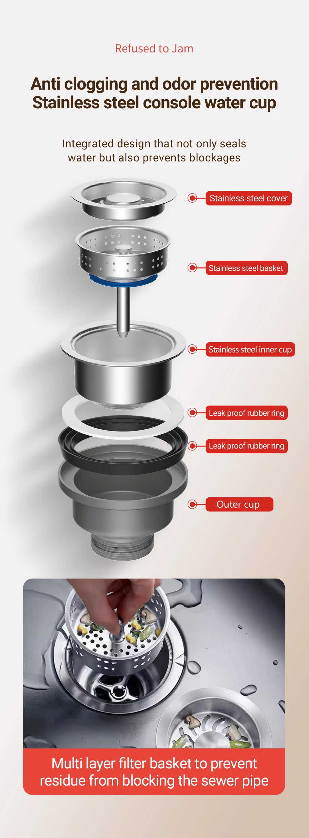 Bestseller SS Afdekkingszeef Afvalmet Removable Deep Waste Mand Montage Afvoerlepelbeker met Overloopwater