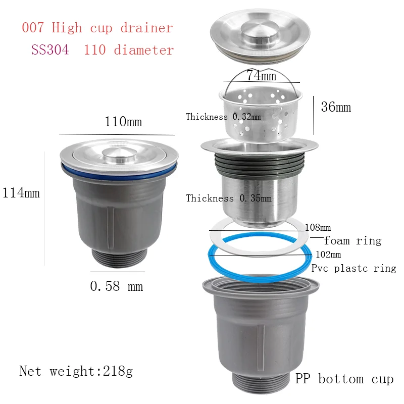 Bestseller SS Afdekkingszeef Afvalmet Removable Deep Waste Mand Montage Afvoerlepelbeker met Overloopwater