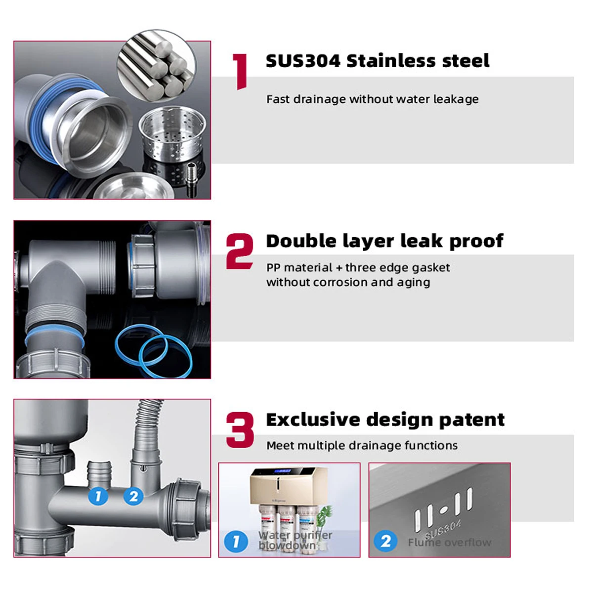 Bestseller SS Afdekkingszeef Afvalmet Removable Deep Waste Mand Montage Afvoerlepelbeker met Overloopwater