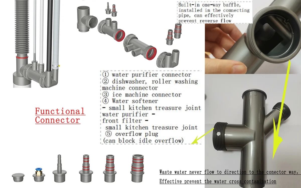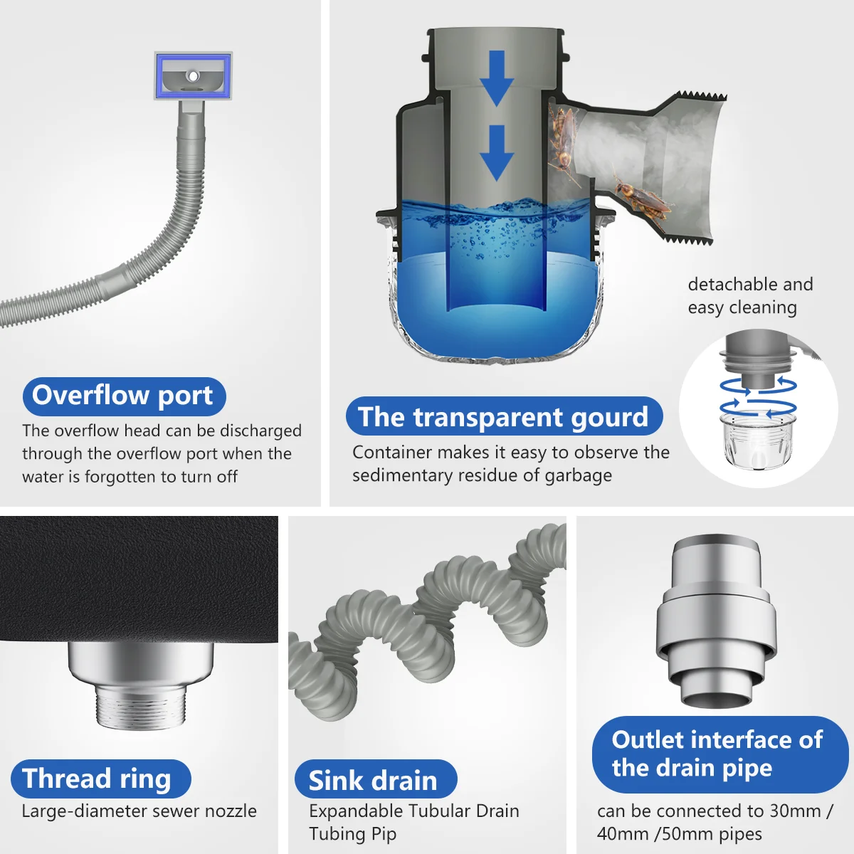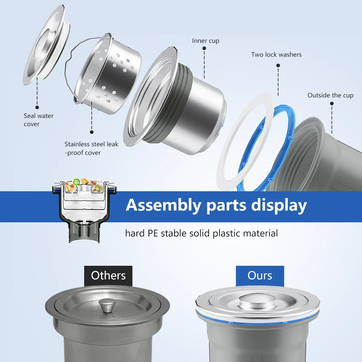 Bestseller SS Afdekkingszeef Afvalmet Removable Deep Waste Mand Montage Afvoerlepelbeker met Overloopwater