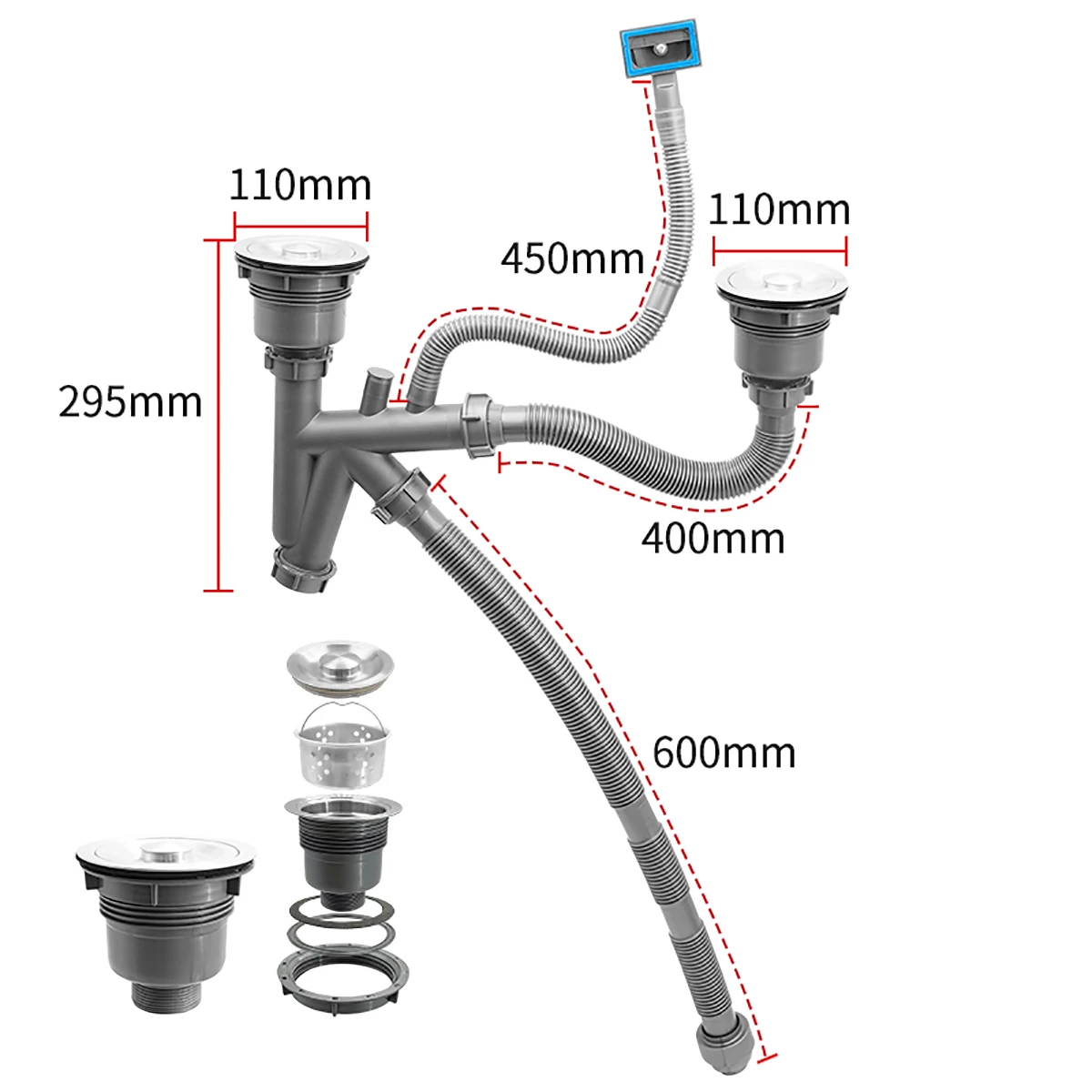 Bestseller SS Afdekkingszeef Afvalmet Removable Deep Waste Mand Montage Afvoerlepelbeker met Overloopwater