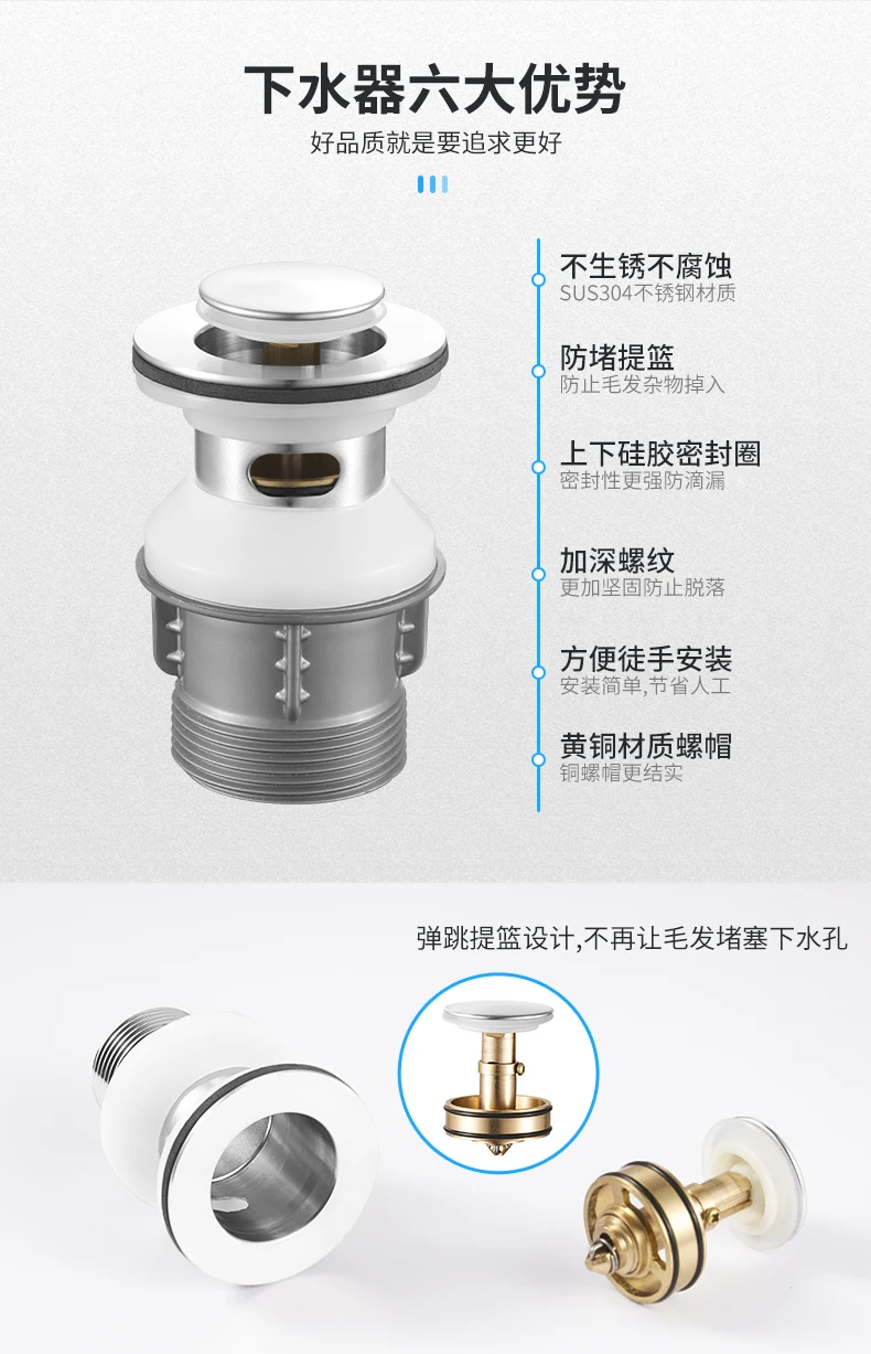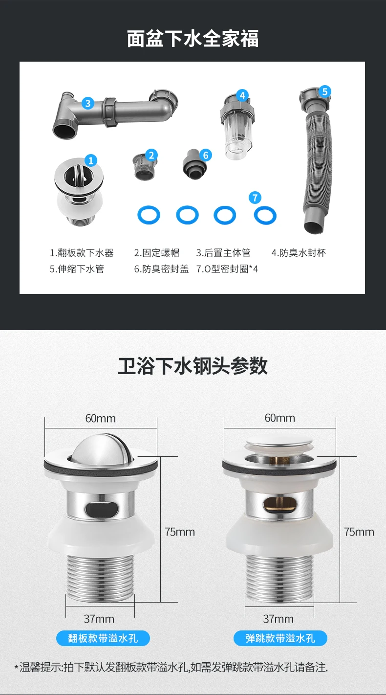Hoogwaardige Badkamer Wasbak Filter Vlap Stopcontact Afvoer met Zware Duty Verdikte Rubber Gaskets