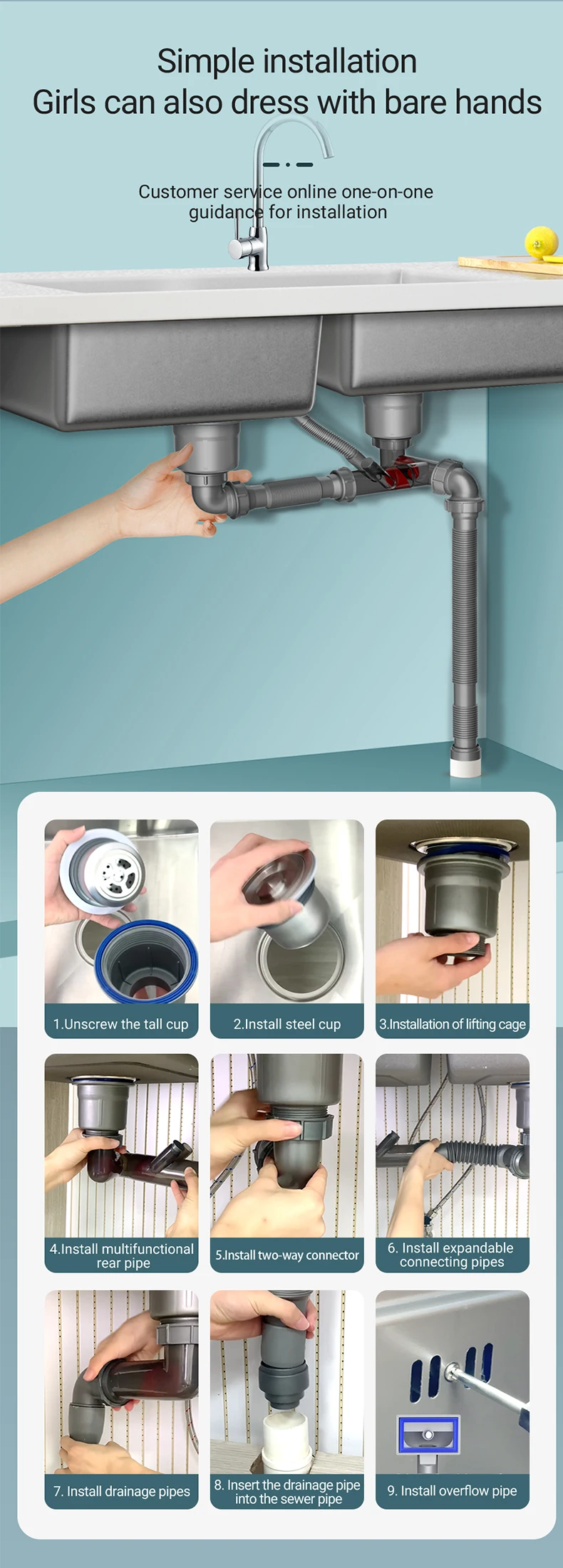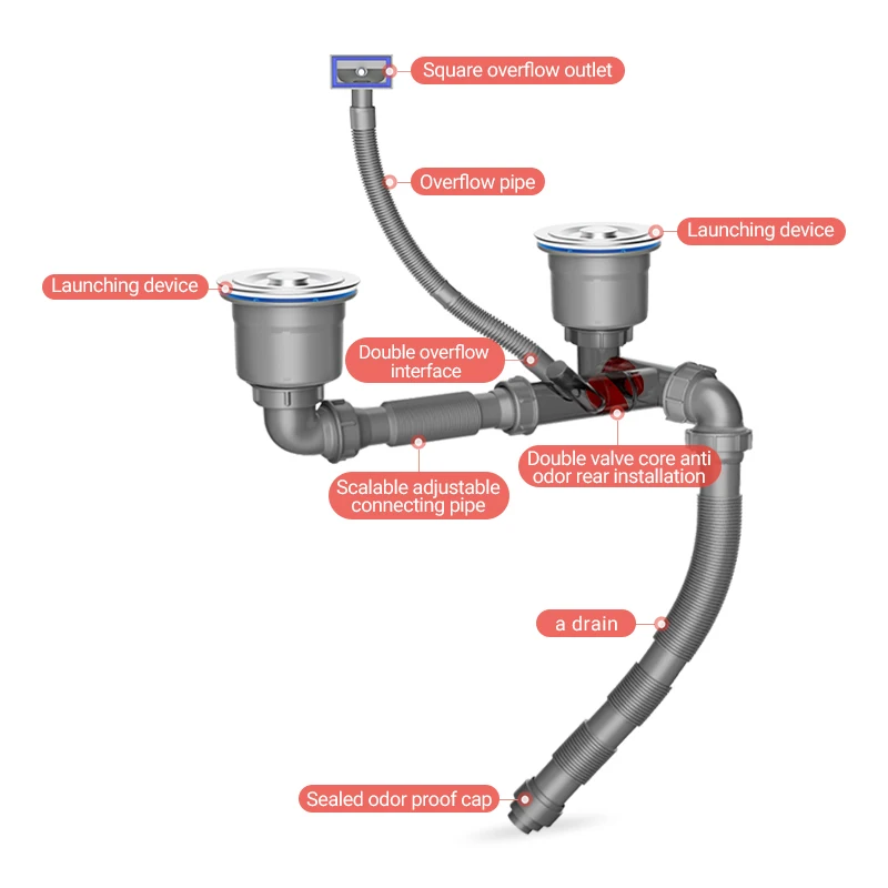 Bestseller SS Afdekkingszeef Afvalmet Removable Deep Waste Mand Montage Afvoerlepelbeker met Overloopwater