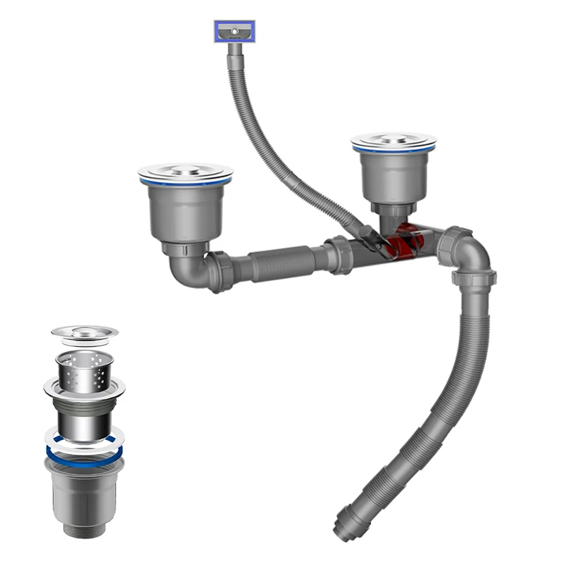 Badkamer opstaande drukknop wastafel flexibele afvoerpijp sifon met uit te trekken slang