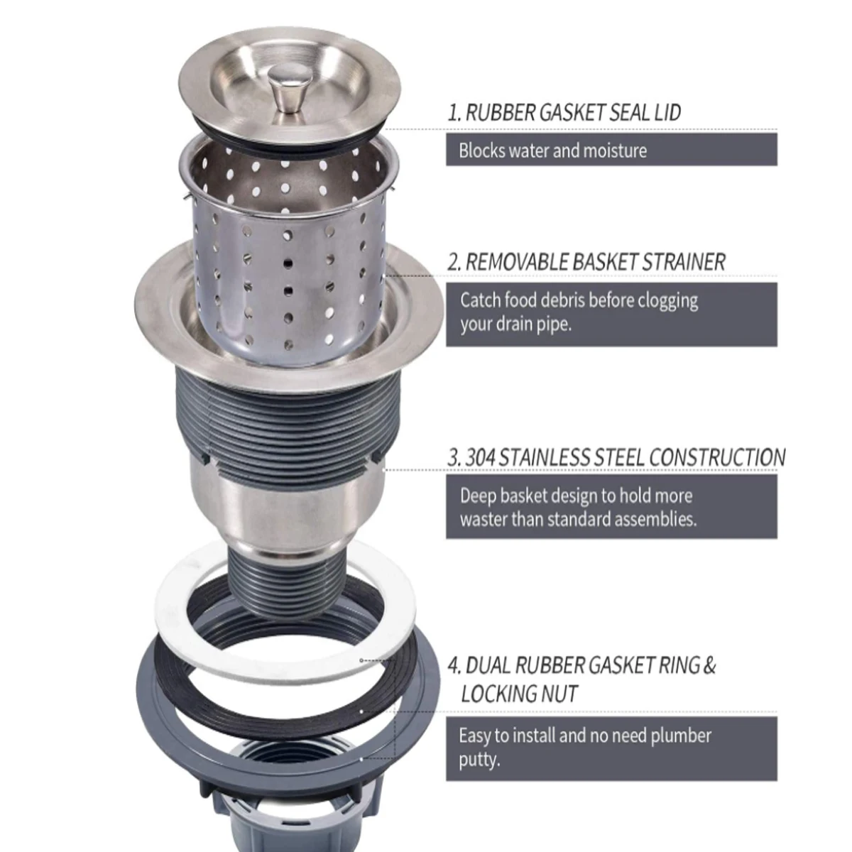 Bestseller SS Afdekkingszeef Afvalmet Removable Deep Waste Mand Montage Afvoerlepelbeker met Overloopwater