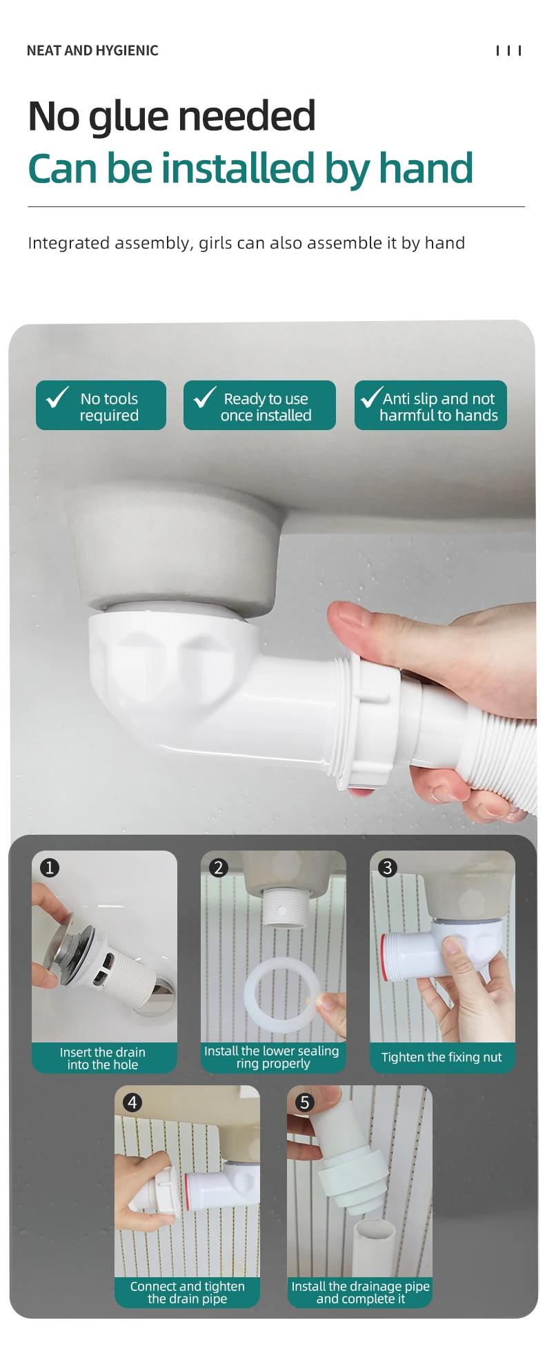 Hoogwaardige Badkamer Wasbak Filter Vlap Stopcontact Afvoer met Zware Duty Verdikte Rubber Gaskets