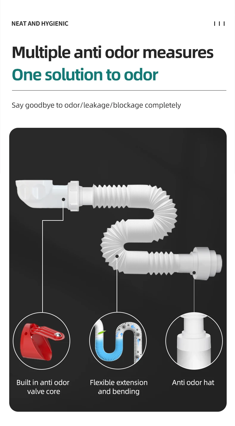 Fabrieksdirecte Levering Dubbele Bak Keuken Gootsteen Plastic Flexibele Afvoerslang Gootsteen Afval Afvoerpijp